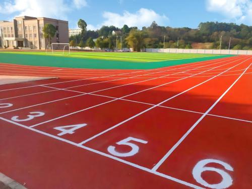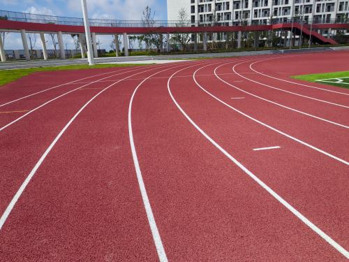 夏季高温塑胶跑道施工避免起泡变形需注意:选耐高温配方材料,调整固化剂比例;基层干燥(含水率≤5%),提前做防水处理;避开正午高温时段施工,早晚作业;摊铺厚度均匀,避免局部过厚;施工后覆盖薄膜,减少水分蒸发过快;保持通风,避免暴晒,待材料自然固化。