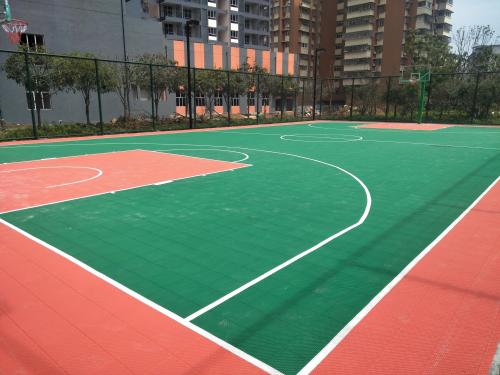 悬浮式拼装地板篮球场施工采用环保聚丙烯材料,通过锁扣式拼接实现无胶水快速安装。施工流程包括场地平整、基础处理、地板铺装及边缘固定,具有排水性强、减震防滑、耐候性佳等特点。