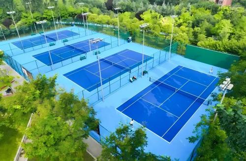 社区公园室外网球场地弹性地面多采用丙烯酸、硅PU或红土材质。施工需先做平整、排水良好的基础层,再铺设弹性层,最后涂装面层。面层需防滑、耐磨,满足网球运动需求,同时兼顾耐候性,适应室外环境变化。