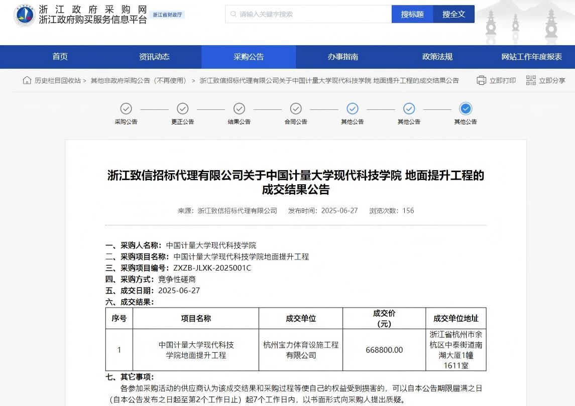 2025年6月27日中标中国计量大学现代科技学院地面提升工程