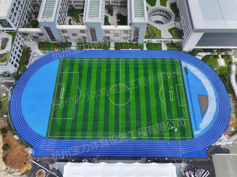 2023年由杭州宝力体育设施工程有限公司承建的杭州师范大学附属中学400米半预制塑胶跑道,人造草足球场以及采用EPDM环保颗粒铺设的多功能运动地面,为学校体育教学与活动提供了安全、专业的运动环境。